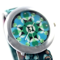 Scarf watch band is threaded through the watch. You can choose the color from: blue, green or red. Scarf can be tight twist and tie around the wrist or its the corners may be composed into a free bow.