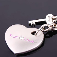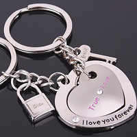 A heart shaped keychain with the phrases True Love and I'll love you forever is just the perfect gift for the two lovers.