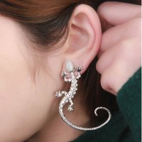 Original ear cuff Lizard can be worn as usual stud earring and as ear cuff earrings fastening to the top of the ear. It seems like the lizard is sitting on the ear catching it with a tail.