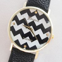 Classic watch with a zigzaggy black stripes on a face suits perfectly to any of your image.